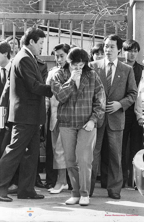 - 1989년 4월 4일 대한항공 858기 폭파사건과 관련 국가보안법 위반(반국가단체지령 목적수행살인)등 혐의로 불구속기소된 김현희 피고인이 경찰들의 경비를 받으며 결심공판을 받기 위해 서울 서소문 서울지법 법정으로 들어가고 있다.