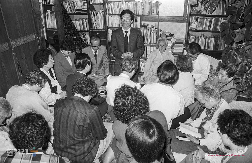 - 1989년 4월 5일 문익환 목사의 북한방문을 계기로 재야단체에 대한 전면 수사에 들어간 가운데 문목사의 모친 김신묵여사의 생신을 맞아 서울 수유리 문목사의 자택에서 가족, 교인들이 모인 가운데 가족기도회를 하고 있다.