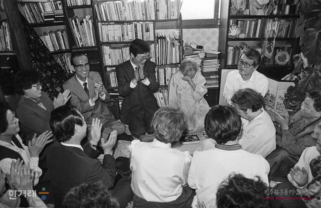 - 1989년 4월 5일 문익환 목사의 북한방문을 계기로 재야단체에 대한 전면 수사에 들어간 가운데 문목사의 모친 김신묵여사의 생신을 맞아 서울 수유리 문목사의 자택에서 가족, 교인들이 모인 가운데 가족기도회를 하고 있다.