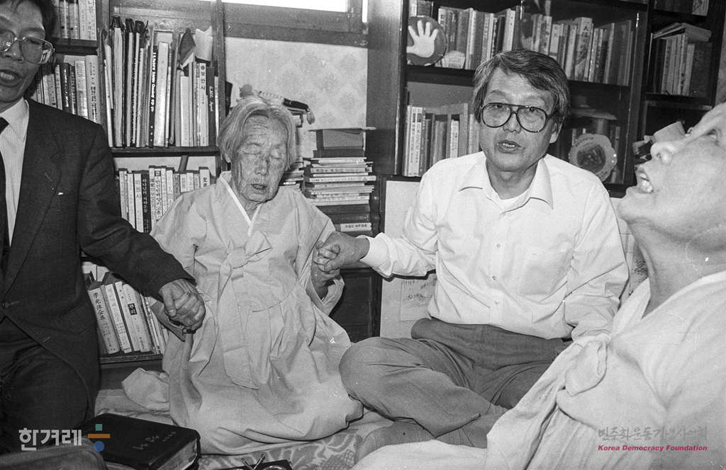 - 1989년 4월 5일 문익환 목사의 북한방문을 계기로 재야단체에 대한 전면 수사에 들어간 가운데 문목사의 모친 김신묵여사의 생신을 맞아 서울 수유리 문목사의 자택에서 가족, 교인들이 모인 가운데 가족기도회를 하고 있다.