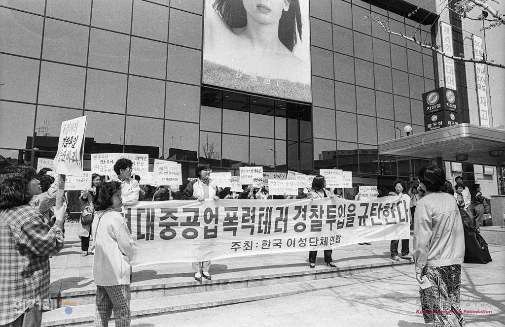 - 1989년 4월 11일 낮 12시30분 한국여성단체연합(회장 이우정), 민가협 소속 회원 등 69여명은 서울 강남구 압구정동 현대백화점 압구정 본점과 현대자동차 압구정 영업소앞에서 현대중공업 노동쟁의에 대한 공권력 개입을 규탄하는 시위를 벌이고 있다.