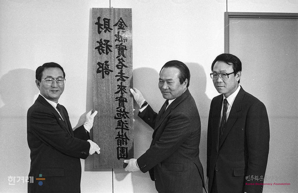 - 1989년 4월 11일 오는 91년부터 금융실명제와 금융자산 소득종합과세를 시행하기 위한 준비기구로서 금융실명거래실시 준비단이 발족돼 이규성 재무부장관(현판 오른쪽)과 이동호 재무부차관이 현판식을 하고 있다.