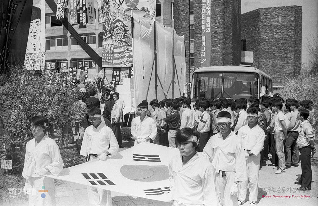 - 1989년 4월 12일 오전 11시 45분 지난 7일 자주 민주 통일 등의 구호를 외치며 교내에서 분신 자살한 서울교대생 남태현씨의 영결식이 서울교대에서 열려 유가족 학생 시민 등 2천여명이 참석한 가운데 민주학생장으로 거행되고 있다. 장례행령이 교뮨을 빠져 나가기 전 유족들이 당초 학생들과의 약속과는 달리 남씨의 시신을 화장하려 한 사실이 밝혀져 밤늦게까지 장례식을 치르지 못했다.