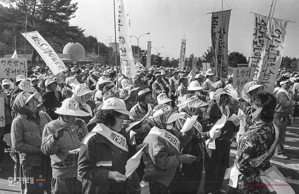 - 1989년 4월 12일 경남 양산군 고리 원자력발전소 주변 주민들 1천여명이 핵 폐기물 불법 매립과 관련해서 고리 원자력발전소 정문앞에서 핵폐기물을 싣고와 셍존권 보장을 요구하며 시위를 벌이고 있다.