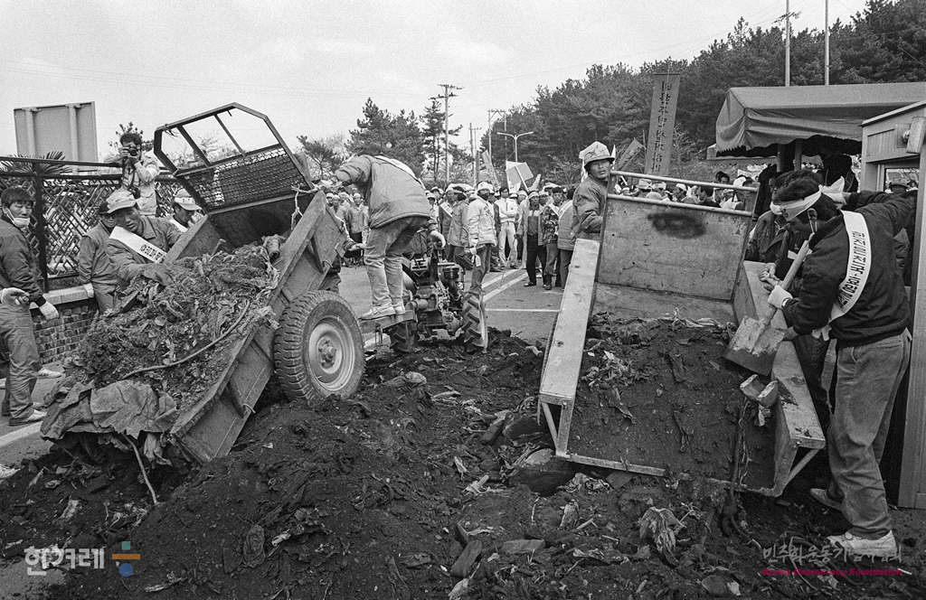 - 1989년 4월 12일 경남 양산군 고리 원자력발전소 주변 주민들 1천여명이 핵 폐기물 불법 매립과 관련해서 고리 원자력발전소 정문앞에서 핵폐기물을 싣고와 셍존권 보장을 요구하며 시위를 벌이고 있다.