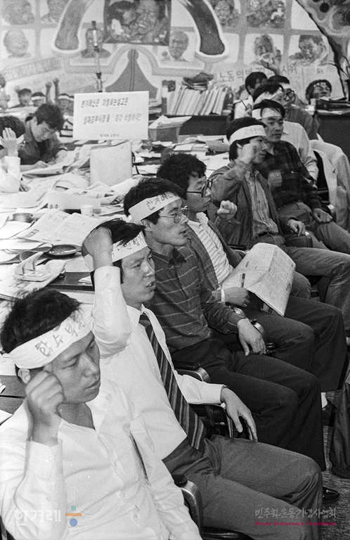 - 1989년 4월 15일 이영희 논설고문의 구속 등 한겨레신문 탄압이 알려진 뒤 이틀째 한겨레사원들이 밤생농성중인 가운데 각계 인사들의 격려방문이 줄을 있고 있다.