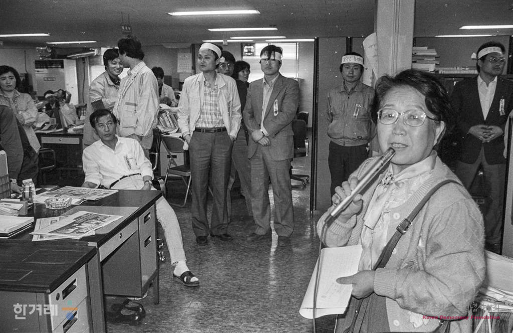 - 1989년 4월 15일 이영희 논설고문의 구속 등 한겨레신문 탄압이 알려진 뒤 이틀째 한겨레사원들이 밤생농성중인 가운데 각계 인사들의 격려방문이 줄을 있고 있다.