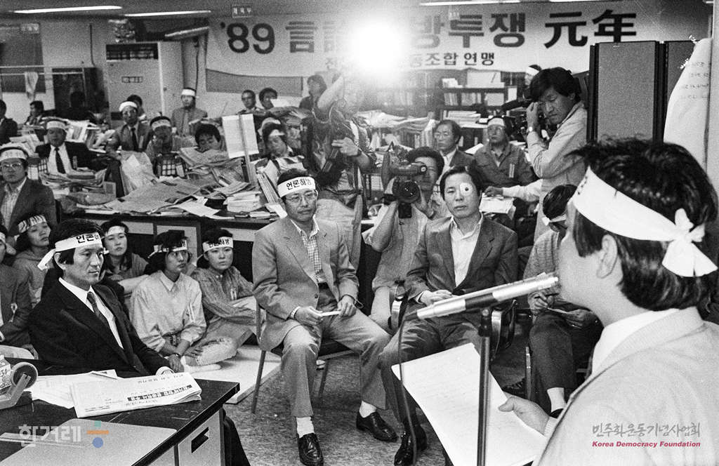 - 1989년 4월 14일 북한방북취재게획을 했다는 이유로 이영희 논설고문의 구속 등 한겨레신문 탄압이 계속되는 가운데 한겨레신문 편집국은 임원회의와 노조비상총회 긴급 사원총회를 잇달아 열고 의연히 대처키로 결의를 다지고 있다.