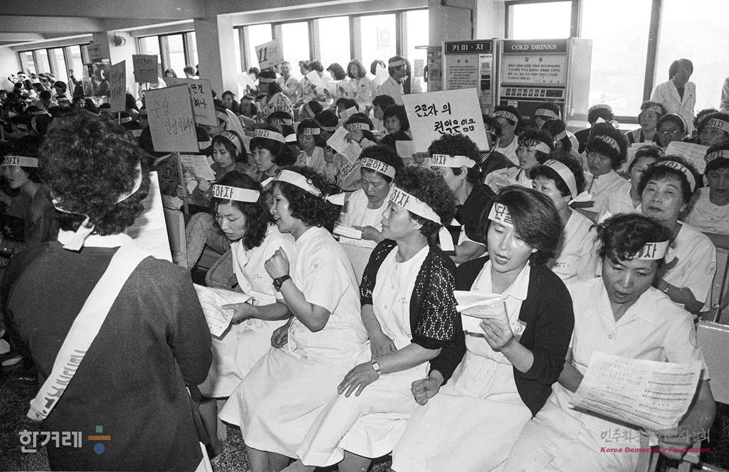 - 1989년 4월 17일 오전 7시 신촌 영동 세브란스병원 노조원 7백여명은 서울 신촌 세브란스병원 외래진료소 1층에서 단체협약 이행을 요구하며 부분태업에 돌입 병원업무 일부가 마비되고 있다.