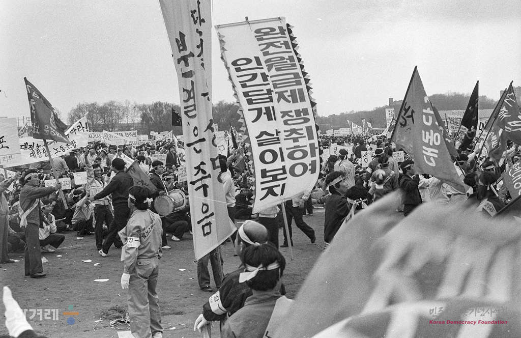- 1989년 4월 17일 오후6시 전국택시노동조합연맹 서울시지부는 서울 동작구 대방동 보라매공원에서 서울시내 2백 64개 조합 소속 조합원 1만여명이 참가한 가운데 완전월급제 쟁취 결의대회를 갖고 있다.