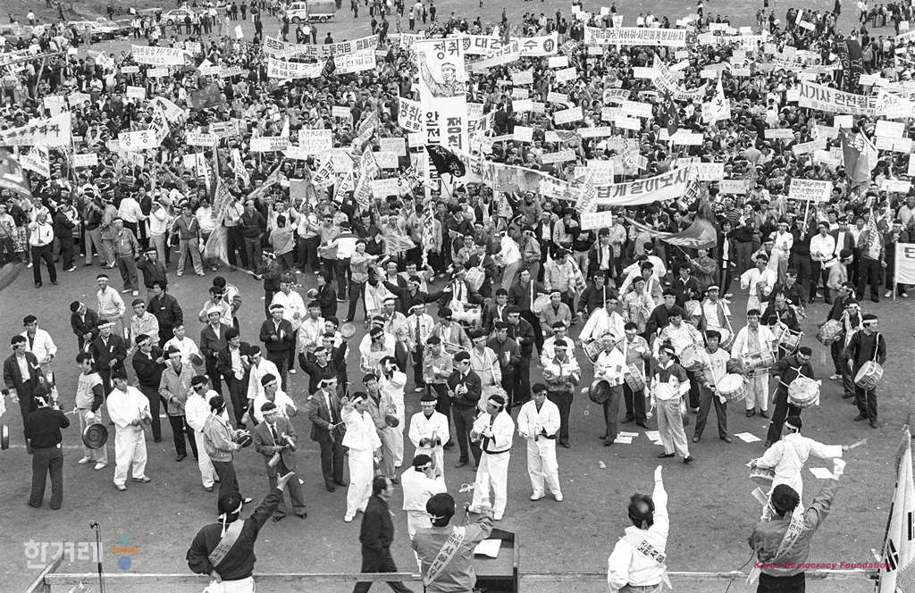 - 1989년 4월 17일 오후6시 전국택시노동조합연맹 서울시지부는 서울 동작구 대방동 보라매공원에서 서울시내 2백 64개 조합 소속 조합원 1만여명이 참가한 가운데 완전월급제 쟁취 결의대회를 갖고 있다.