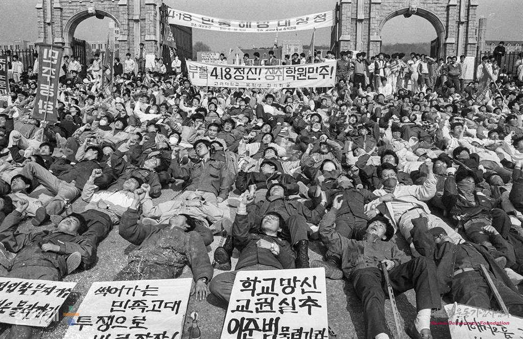 - 1989년 4월 18일 11시 고려대생 7천여명은 교내 대운동장에서 4.18민중 학생 해방대장정 출정식을 갖고 4.19정신의 부활을 다짐하는 투쟁선언문을 발표한 뒤 서울 도봉구 수유동 4.19묘지까지 행진을 하고 있다.