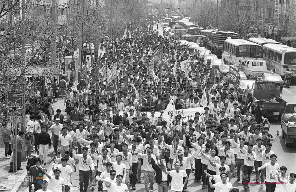 - 1989년 4월 18일 11시 고려대생 7천여명은 교내 대운동장에서 4.18민중 학생 해방대장정 출정식을 갖고 4.19정신의 부활을 다짐하는 투쟁선언문을 발표한 뒤 서울 도봉구 수유동 4.19묘지까지 행진을 하고 있다.