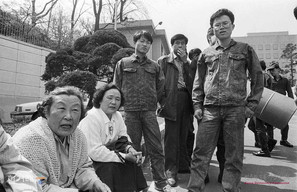- 1989년 4월 18일 문익환 목사의 부인 박용길씨와 이영희교수의 부인 윤영자씨 등 민가협회원 10명은 서울 중구 예장동 안기부입구에서 이틀째 면회신청했으나 거부당한 채 사복경찰 30여명에 둘러싸여 있다. 이들은 경찰에 의해 마이크로버스에 실려 종로구 혜화동 육교아래 내려졌다.