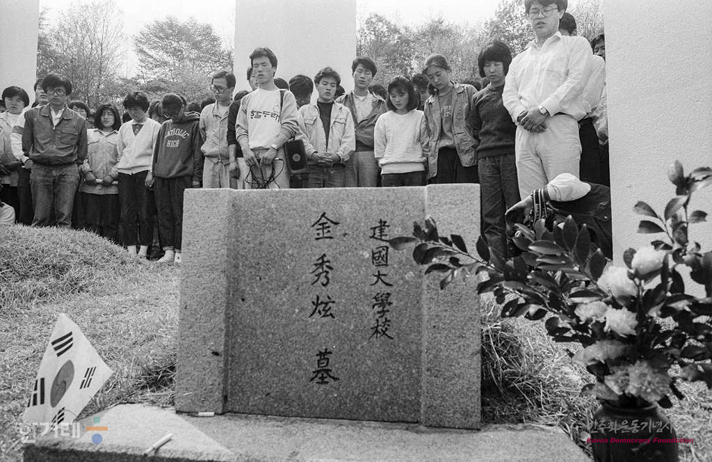 - 1989년 4월 19일 오후 3시 4.19혁명 29주년을 맞아 서울 도봉구 수유동 4.19묘소에서 시민 학생 재야단체 회원 등 2천여명이 참석한 가운데 4월혁명 29주년 기념대회를 갖은 뒤 참배를 하고 있다.
