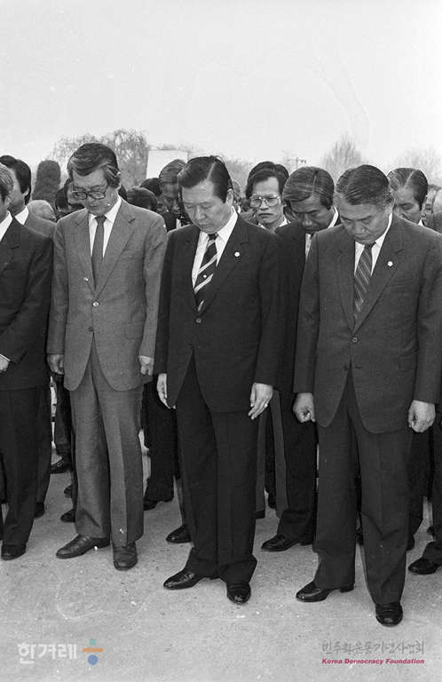 - 1989년 4월 19일 오후 3시 4.19혁명 29주년을 맞아 서울 도봉구 수유동 4.19묘소에서 김대중 평민당 총재를 비롯한 당 관계자들이 참배를 하고 있다.