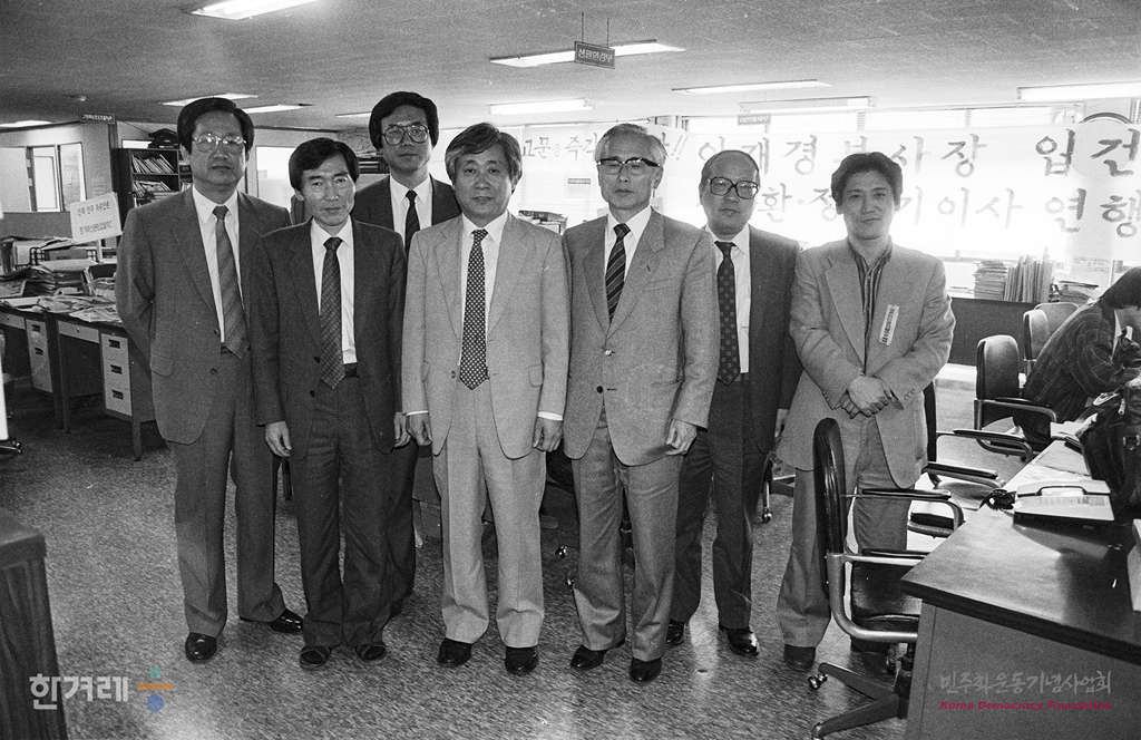 - 1989년 4월 19일 국가안전기획부의 한겨레신문 장윤환 편집위원장과 정태기 이사 겸 개발본부장에 대한 구인영장 청구가 20일중에 할 것으로 알려진 가운데 한겨레신문 편집국에서 사원들이 비상총회가 개최돼 결의를 다지고 있다.