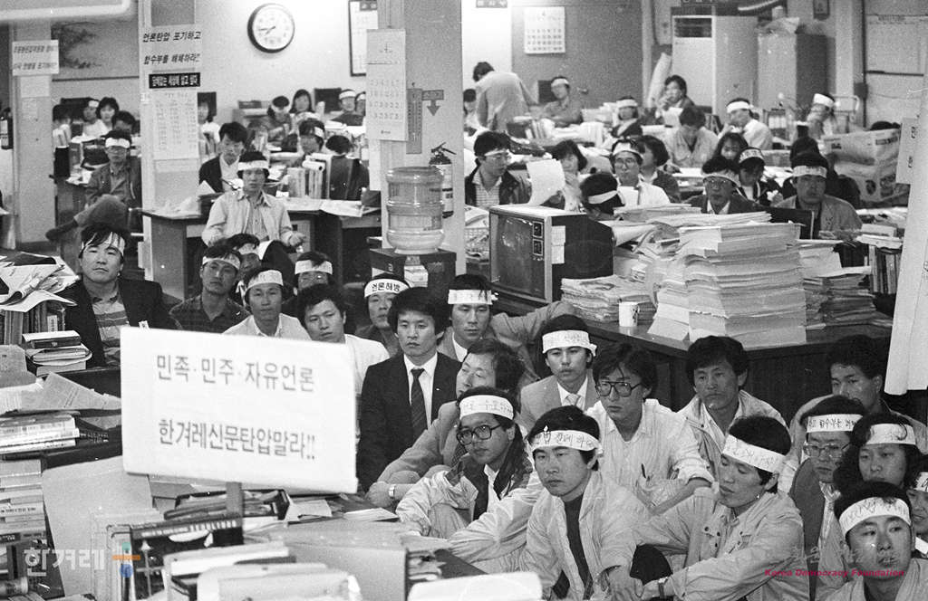 - 1989년 4월 19일 국가안전기획부의 한겨레신문 장윤환 편집위원장과 정태기 이사 겸 개발본부장에 대한 구인영장 청구가 20일중에 할 것으로 알려진 가운데 한겨레신문 편집국에서 사원들이 비상총회가 개최돼 결의를 다지고 있다.