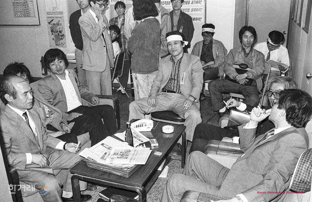 - 1989년 4월 19일 국가안전기획부의 한겨레신문 장윤환 편집위원장과 정태기 이사 겸 개발본부장에 대한 구인영장 청구가 20일중에 할 것으로 알려진 가운데 한겨레신문 편집국에서 사원들이 비상총회가 개최돼 결의를 다지고 있다.