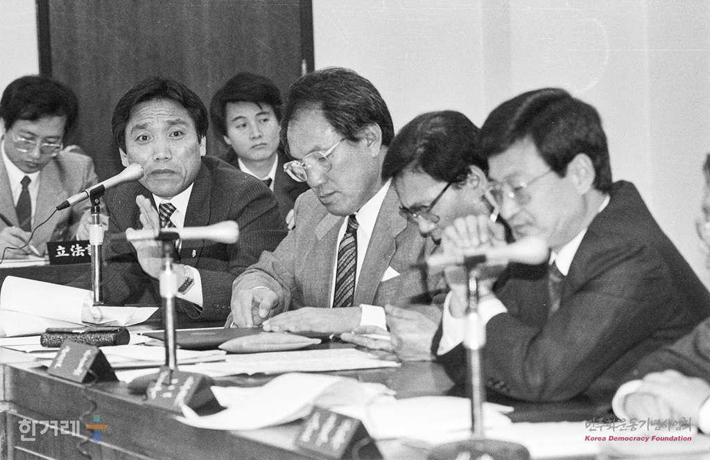 - 1989년 4월 20일 오전10시 한겨레신문 북한 취재계획 관련 탄압과 고려대 휴업사태 등을 다루기 위한 열린 국회 문공위에서 최병렬 문공부장관이 언론탄압을 추궁하는 야당의원들의 질문을에 답변을 하고 있다.