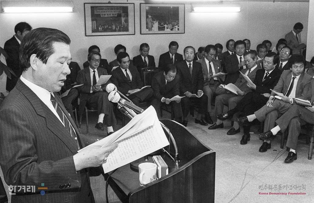 - 1989년 4월 20일 김대중 평민당 총재는 여의도 중앙당사에서 한겨레신문에 대한 언론탄압과 5공청산과 민주화, 노사관계와 학원문제, 7.7선언과 북방외교 등의 정치현안에 대해 입장을 밝히는 기자회견을 하고 있다.
