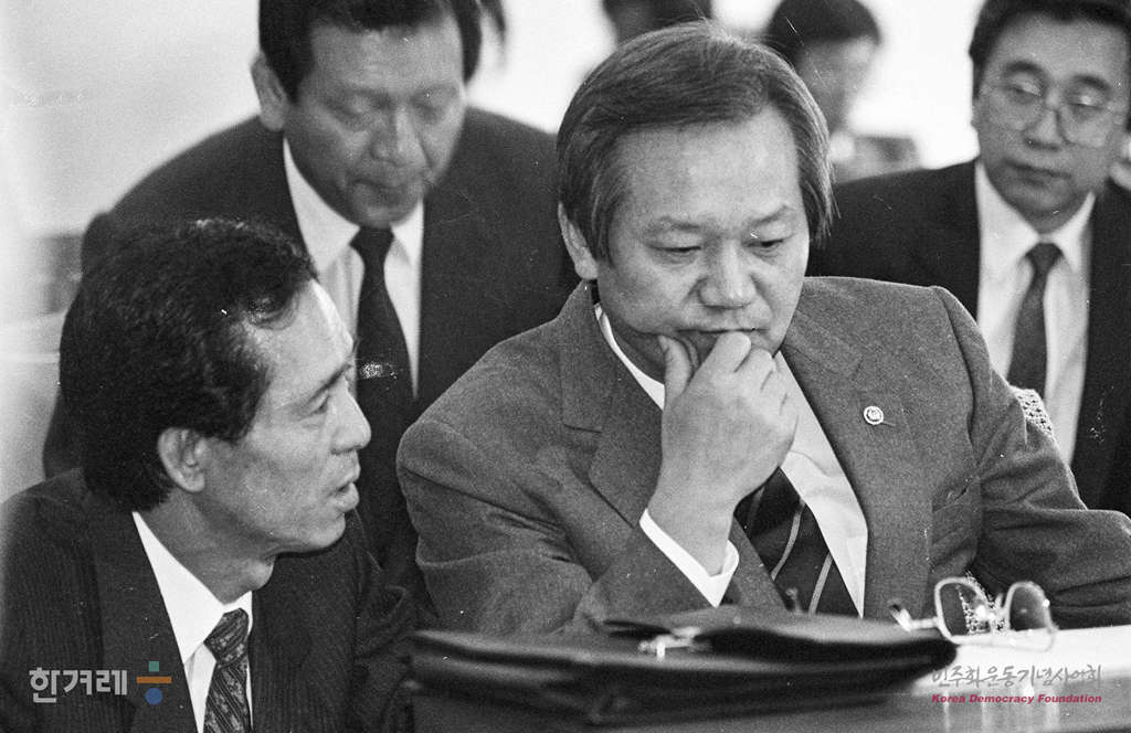 - 1989년 4월 20일 오전10시 한겨레신문 북한 취재계획 관련 탄압과 고려대 휴업사태 등을 다루기 위한 열린 국회 문공위에서 최병렬 문공부장관이 언론탄압을 추궁하는 야당의원들의 질문을 듣고 난처한 표정을 짓고 있다