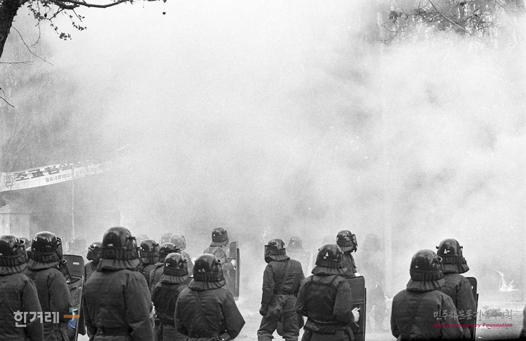 - 1989년 4월 21일 서총련산하 서울지구 동부지역 총학생회연합 발대식에 서울 건국대에서 열려 한양대를 비롯한 동부지역 대학생들이 집회를 마친 뒤 교문밖 진출을 시도하다 경찰에 막히자 시위를 벌이고 있다.