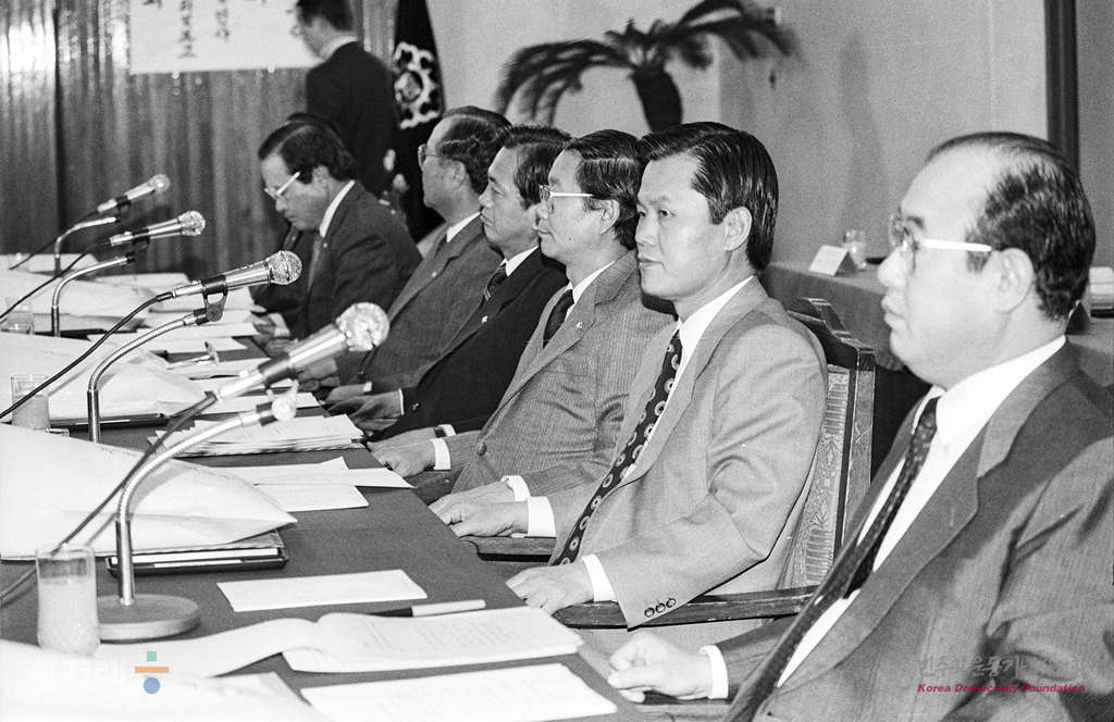 - 1989년 4월 21일 이홍구 통일원장관이 주재하는 남북교류협력추진협의회 제 1차회의가 정부종합청사에서 열려 경제기획원 외무부 상공부 등 15개 관련부터 차관들이 참석한 가운데 남북교류협력 기본지침과 운영세칙을 논의하고 있다.