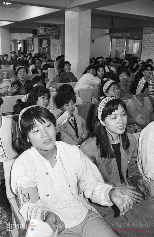 - 1989년 4월 22일 전국 병원에서 쟁의가 확산중이며 파업 등으로 13개 병원에서 진료업무가 마비된 가운데 파업쟁의중인 서울 신촌 세브란스병원 외래진료소 1층에서 노조원들이 농성을 계속하고 있다.