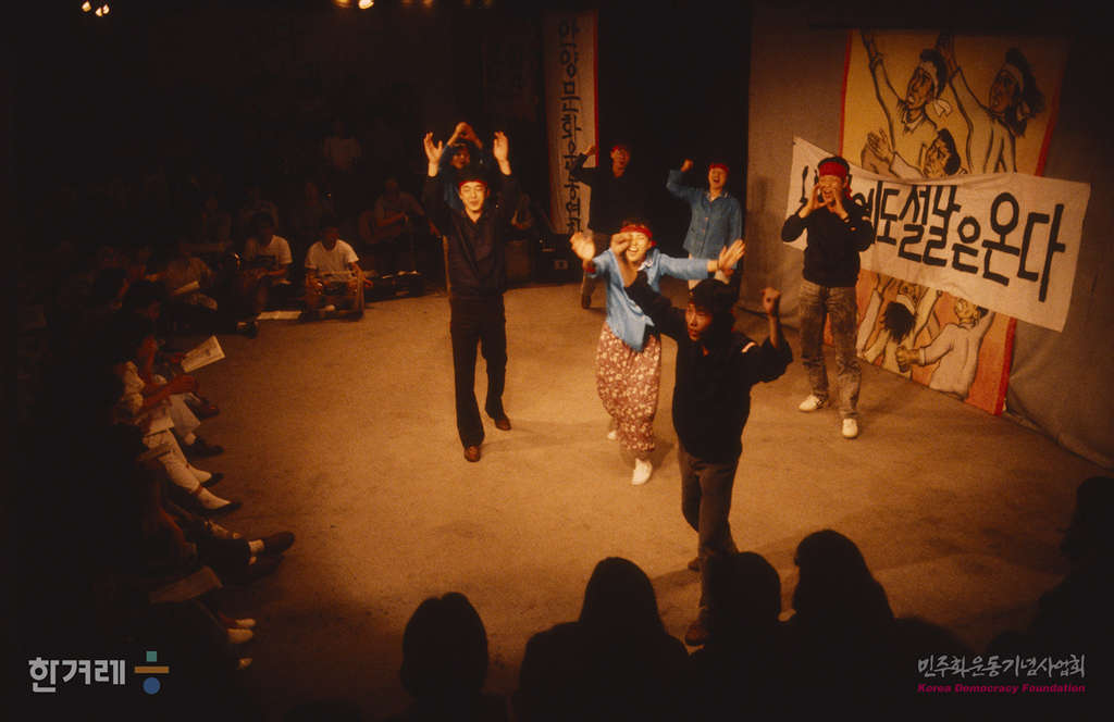 - 1988년 제 1회 민족극한마당이 3월 3일부터 4월 30일까지 서울 에술극장 미리내에서 열려 노동문제를 다룬 극단 현장의 횃불을 공연하고 있다.