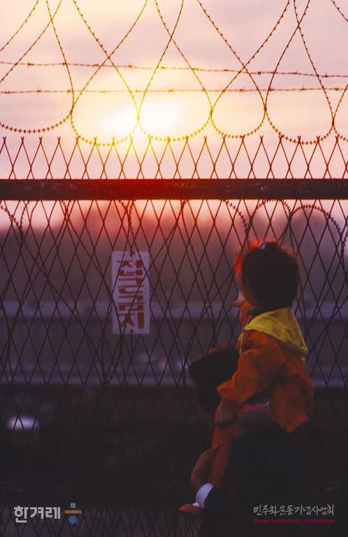 - 1988년 7월 3일 임진각에서 민통련 등 재야 49개 단체 주최로 열린 통일염원 범국민 평화대행진 행사에 어른을 따라온 어린이가 남북을 가로막은 철조망을 쳐다보고 있다.