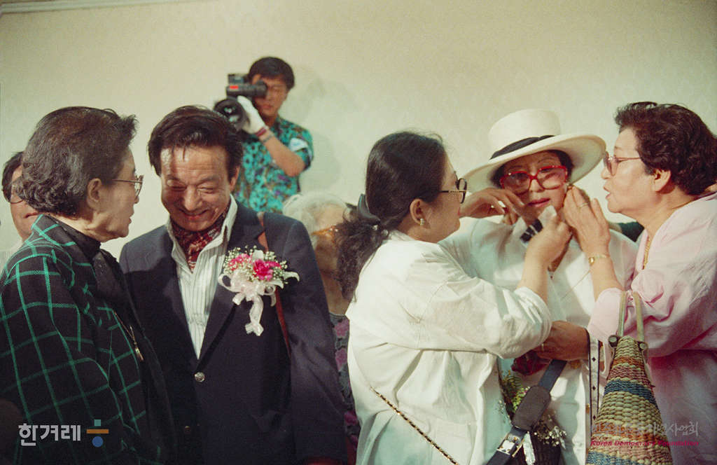 - 1989년 5월 23일 5시 45분 북한에 머문 지 8년만인 지난 86년 3월 북한에서 탈출해서 미국에 체류중인 신상옥 최은희씨부부가 대한항공기 001기편으로 귀국해 지인들과 인사를 나누고 있다.