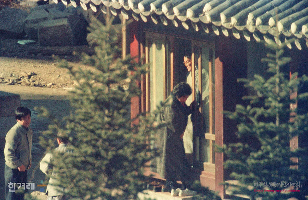 - 1989년 1월 4일 전두환씨와 그의 부인 이순자씨가 은둔하고 있는 강원도 인제군 백담사에서 해를 넘기면서 주변에 배치된 경찰들이 오가는 사람들의 통제하며 일부 신도들이 백담사를 방문하고 있다.