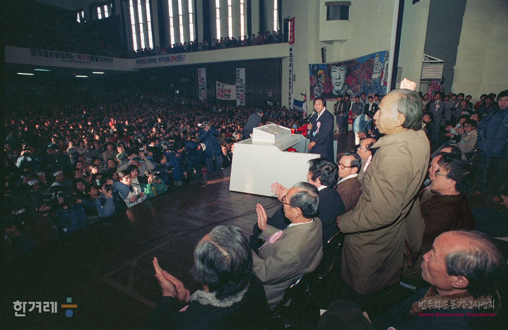- 1989년 1월 21일 오후2시 재야 민족민주운동세력의 전국통합조직인 전국민족민주운동연합(전민련)이 서울 연세대 대강당에서 결성대회를 갖고 정식출범하고 있다. 서울민족민주운동협의회 등 지역통합단체 12개와 전국노동운동단체협의회 등 부문통합단체 8개등 모두 20갸의 참가단체로 출범한 전민련은 2백여개의 개별운동단체를 포괄하고 있어 건국이후 최대규모의 재야통합단체로 평가되고 있다.