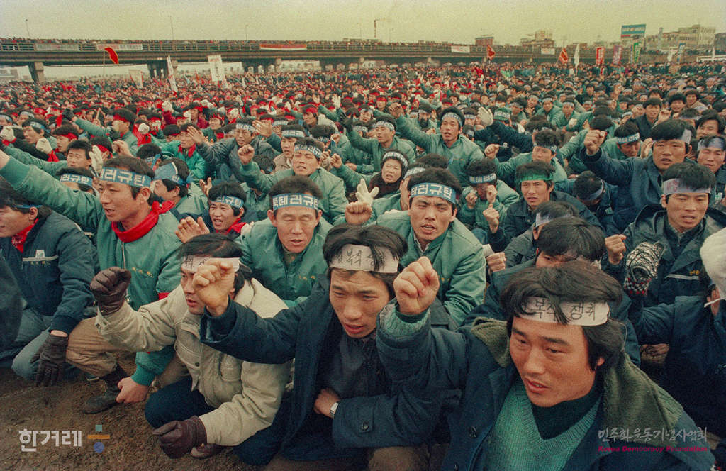 - 1989년 1월 15일 오후2시 전국 노동법개정 및 임금인상 투쟁본부가 주최한 노동운동탄압 분쇄 및 테러만행 규탄 전국노동자대회가 현대중공업 등 현대그룹 11개 계열사 노동자, 서노협, 인천 대구 경북 부산 마산 창원 등 10개 지역노조협의회, 인근 삼성 대우 풍산금속 노동자 및 재야인사 등 3만여명이 참석한 가운데 울산 태화강 고수부지에서 열리고 있다.