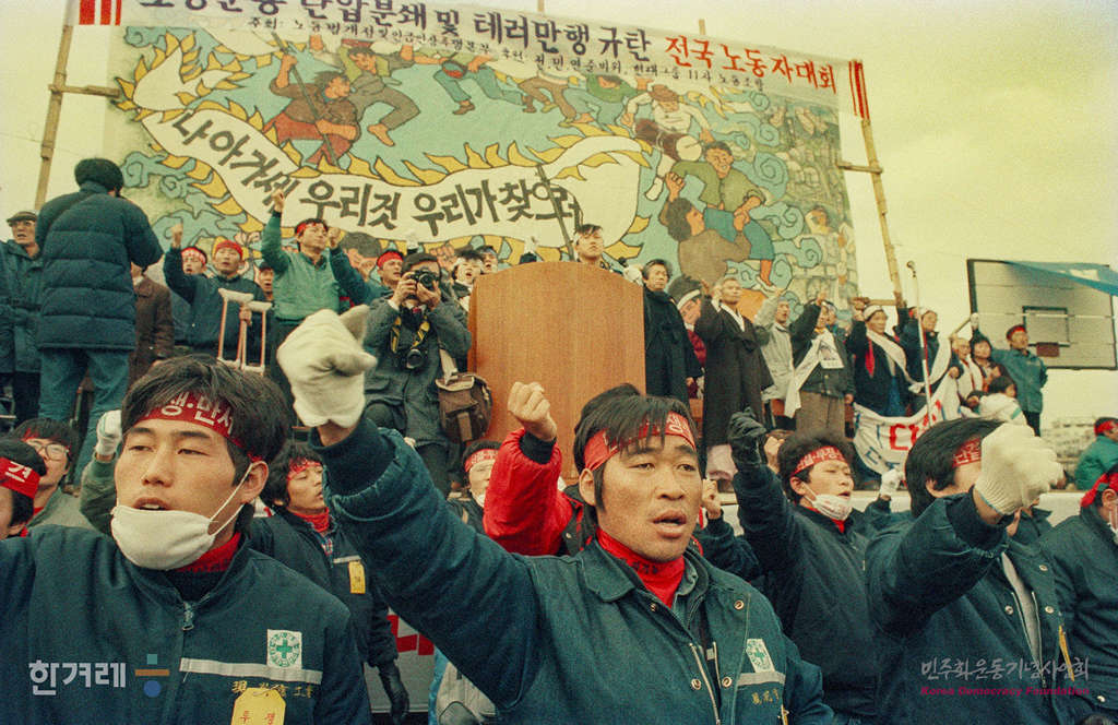 - 1989년 1월 15일 오후2시 전국 노동법개정 및 임금인상 투쟁본부가 주최한 노동운동탄압 분쇄 및 테러만행 규탄 전국노동자대회가 현대중공업 등 현대그룹 11개 계열사 노동자, 서노협, 인천 대구 경북 부산 마산 창원 등 10개 지역노조협의회, 인근 삼성 대우 풍산금속 노동자 및 재야인사 등 3만여명이 참석한 가운데 울산 태화강 고수부지에서 열리고 있다.