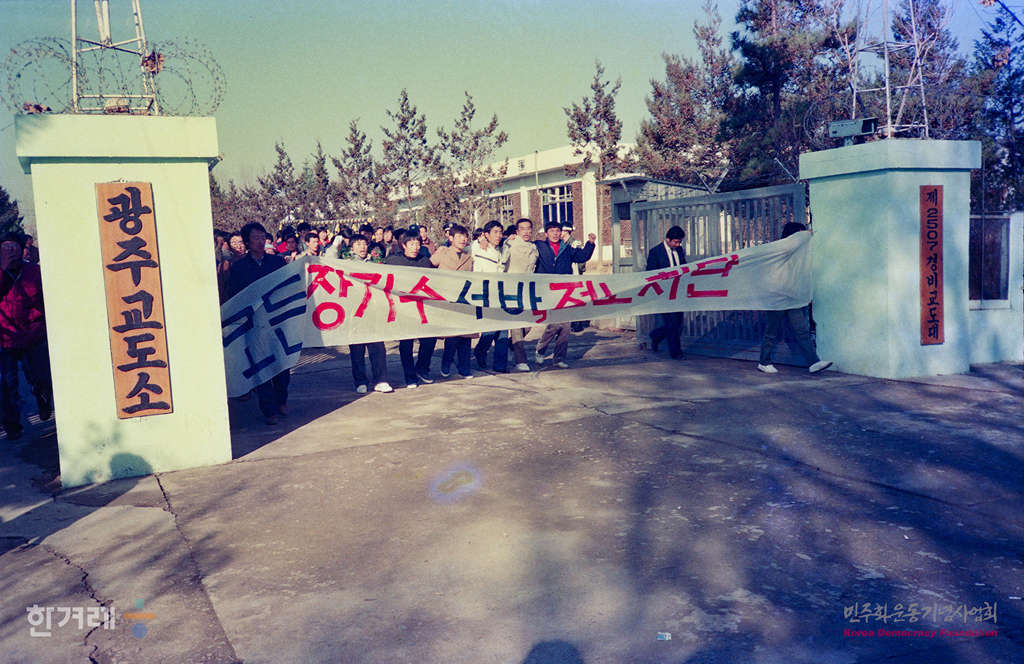 - 1988년 6월 30일 오전 10시 법무부가 재일동포 반공법 및 국가보안법 위반관련자와 김근태씨 등 시국관련 사범 46명을 가석방시킴으로서 광주교도소에 수감된 양심수들이 석방되자 마중나온 시민들에게 손을 들어 인사를 나누고 있다.