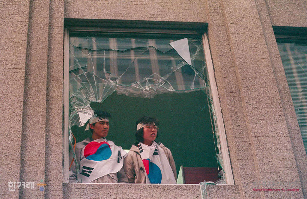 - 1988년 2월 24일 오후5시 연세대 고려대 한양대 국민대 이화여대 등 서울시내 5개대학생 5명이 서울 중구 을지로1가 서울미문화원 2층을 점거하고 반미구호를 외치며 농성을 벌이고 있다. 이들은 경찰에 의해 50분만에 모두 연행됐다.