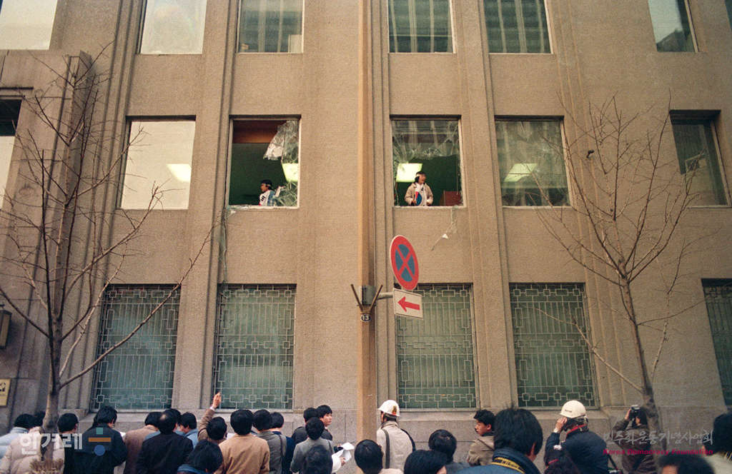 - 1988년 2월 24일 오후5시 연세대 고려대 한양대 국민대 이화여대 등 서울시내 5개대학생 5명이 서울 중구 을지로1가 서울미문화원 2층을 점거하고 반미구호를 외치며 농성을 벌이고 있다. 이들은 경찰에 의해 50분만에 모두 연행됐다.