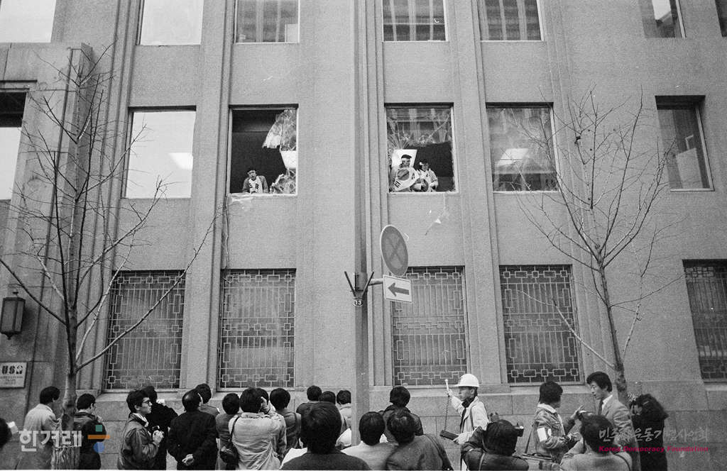 - 1988년 2월 24일 오후5시 연세대 고려대 한양대 국민대 이화여대 등 서울시내 5개대학생 5명이 서울 중구 을지로1가 서울미문화원 2층을 점거하고 반미구호를 외치며 농성을 벌이고 있다. 이들은 경찰에 의해 50분만에 모두 연행됐다.