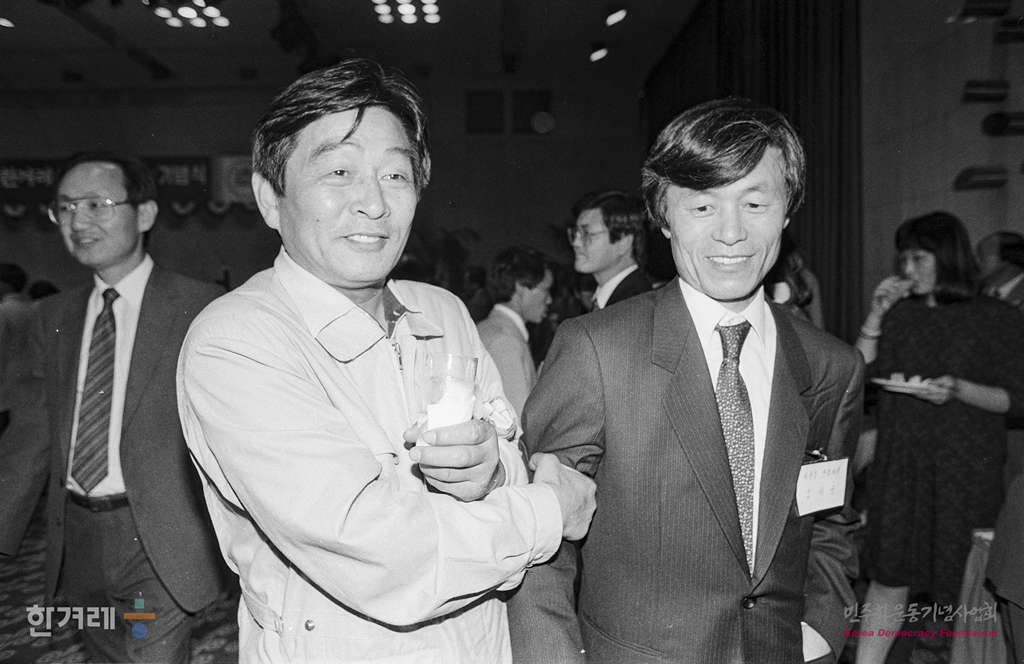 - 1989년 5월 15일 한겨레신문은 서울 양평동 본사에서 기념식을 마친 뒤 이날 오후 7시 각계인사 5백여명이 참석한 가운데 서울 중구 태평로 프레스센터 20층 국제회의장에서 창간 1주년 기념리셉션을 하고 있다.