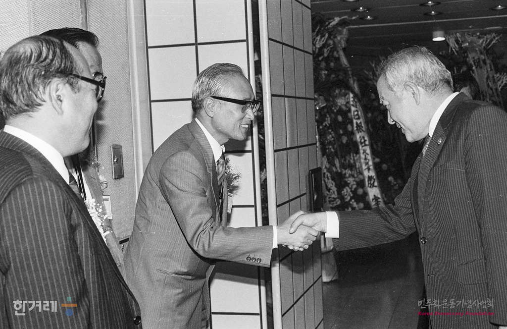 - 1989년 5월 15일 한겨레신문은 서울 양평동 본사에서 기념식을 마친 뒤 이날 오후 7시 각계인사 5백여명이 참석한 가운데 서울 중구 태평로 프레스센터 20층 국제회의장에서 창간 1주년 기념리셉션을 하고 있다.