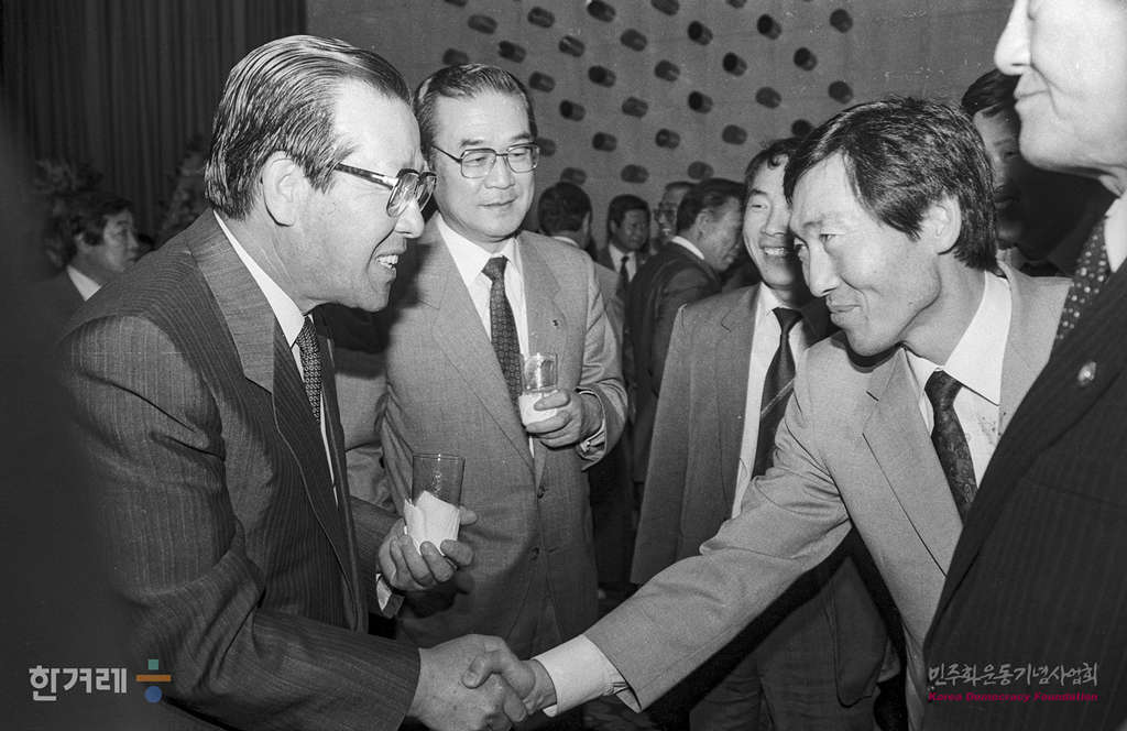 - 1989년 5월 15일 한겨레신문은 서울 양평동 본사에서 기념식을 마친 뒤 이날 오후 7시 각계인사 5백여명이 참석한 가운데 서울 중구 태평로 프레스센터 20층 국제회의장에서 창간 1주년 기념리셉션을 하고 있다.