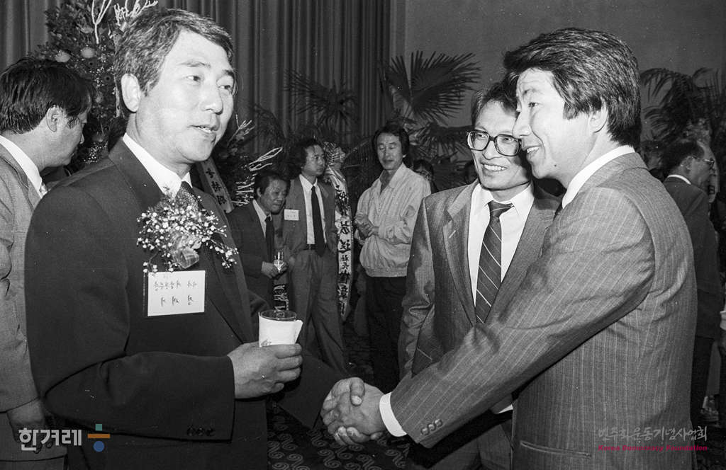 - 1989년 5월 15일 한겨레신문은 서울 양평동 본사에서 기념식을 마친 뒤 이날 오후 7시 각계인사 5백여명이 참석한 가운데 서울 중구 태평로 프레스센터 20층 국제회의장에서 창간 1주년 기념리셉션을 하고 있다.