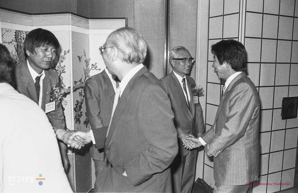 - 1989년 5월 15일 한겨레신문은 서울 양평동 본사에서 기념식을 마친 뒤 이날 오후 7시 각계인사 5백여명이 참석한 가운데 서울 중구 태평로 프레스센터 20층 국제회의장에서 창간 1주년 기념리셉션을 하고 있다.