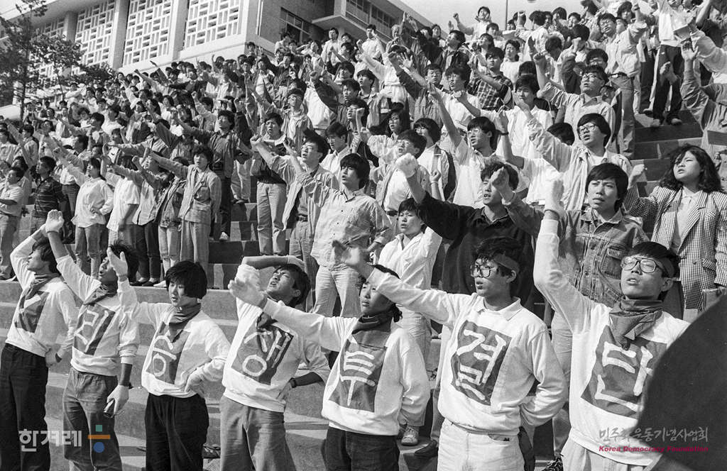 - 1989년 5월 16일 오후2시 서울대 고대 성대 한양대 등 대학생 4백여명은 서울 성균관대 금잔디광장에서 서울지역 민주주의 학생연맹(서민학련) 건설 추진위원회 발족식을 갖고 있다. 이 집회를 마친 뒤 지난 3일 동의대 사건 이후 대학가 시위에서 한동안 잠잠하던 화명병과 최루탄의 공방전이 재현됐다.