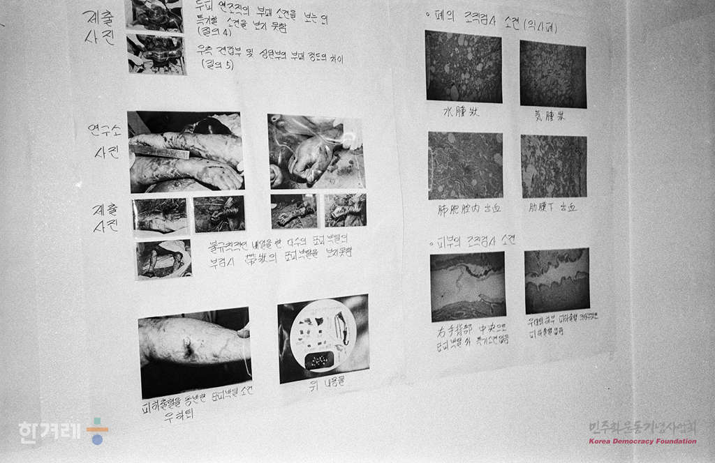 - 1989년 5월 15일 국립과학수사연구소의 윤중진 소장이 조선대생 이철규씨의 장기 조직검사 및 티셔츠 바지 구두 등 유류품과 팬티에 묻은 대변을 감정한 최종 결과를 발표하고 있다.