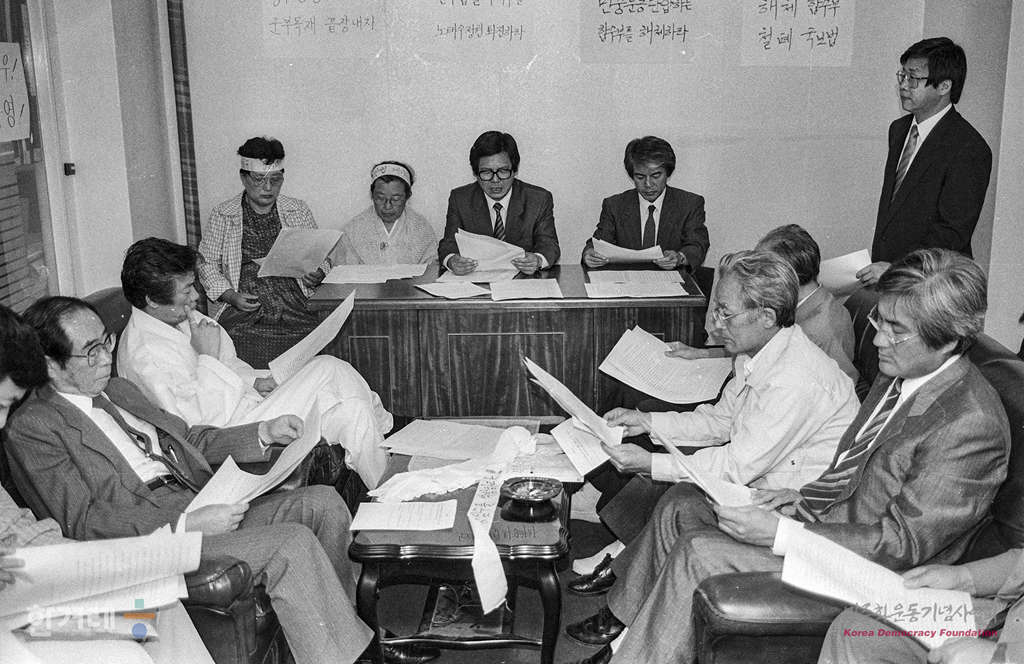 - 1989년 5월 18일 민주화실천가족운동협의회 회원들이 서울 중구 정동 서울지법앞에서 양심수 전원석방과 공안합수부와 안기부 해체, 국가보안법 사회안전법 폐지 등을 요구하며 시위를 벌이고 있다.