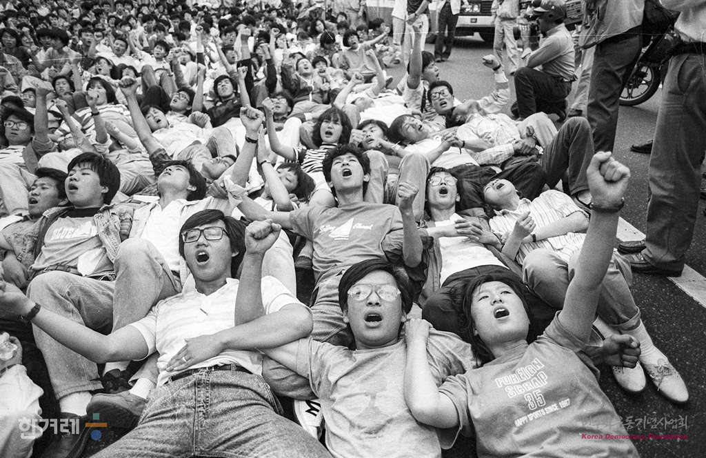 - 1989년 5월 18일 서총련 소속 대학들이 시청앞 광장에서 애국학생 고 이철규열사 고문살인 진상규명 및 공안합수부 해채를 위한 청년학도 결의대회를 가질 예정이었으나 경찰이 원천봉쇄하자 남대문인근 도로에 들러 누워 비폭력 시위를 벌이다 경찰에 연행되고 있다.