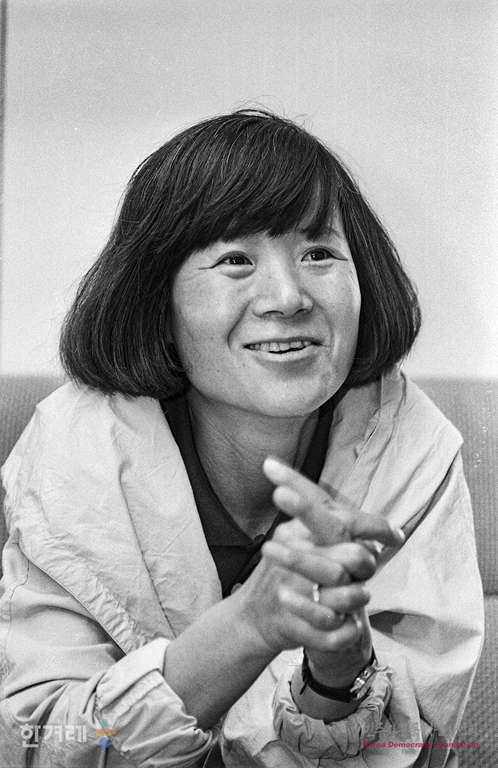 - 1989년 5월 23일 냉전적 반공 의식이 야기한 비인간화 현상과 일상화된 폭력, 민족적 자율성과 계급적 차별, 여성 문제 등 우리 시대의 첨예한 사회, 정치적 문제들을 형상화하는 작품활동을 하고 있는 윤정모 소설가가 한겨레신문과 인터뷰를 하고 있다.